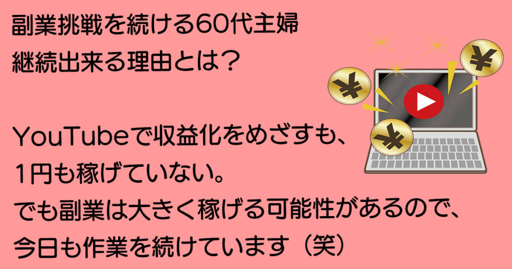 こんにちは。「60代主婦のしっかり終活」を運営しているワインです。 前回、私は年金7万円に対して、あと13万円を投資と副業で賄いたいという話をしました。老後の生活を少しでも安心にするため、副業に挑戦しています。 なぜYouTubeに挑戦したのか お金を... -
