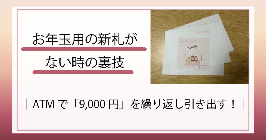 【超簡単】お年玉用の新札がない時の裏技|銀行ATMで「9,000円」を繰り返し引き出す!