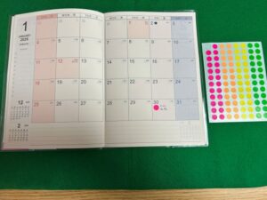 予定を色分けする丸シール(セリア)